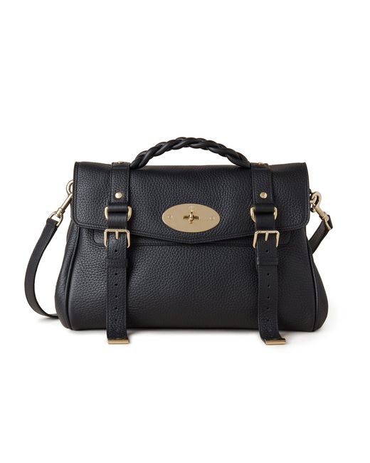 The Alexa effortlessly combines elements from two iconic Mulberry styles: the Bayswater bag and the Elkington briefcase. The result is an understatedly cool satchel complete with the signature Mulberry Postman's Lock and belt buckle and strap hardware. Carry by the plaited leather top handle or wear with the adjustable cross body strap. Details: A cult bag that epitomises laidback luxury. Postman's Lock closure Handcrafted braided top handle Adjustable leather shoulder strap for crossbody wear One main compartment Internal slip pocket Soft Gold component finish Unlined Height 23cm Width 33cm Depth 17cm Shoulder Strap Length 97-113cm Handle Drop 5cm Weight 1kg, approximately Material Heavy Grain A soft heavy bovine leather with a beautiful soft and supple hand feel. The surface will gradually become even softer with use adding to the beauty of the leather. This product's code is HH6746-736A100
