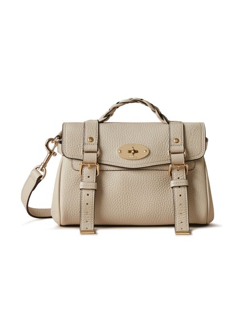 The Mini Alexa effortlessly combines elements from two iconic Mulberry styles: the Bayswater bag and the Elkington briefcase. The result is a miniature version of an understatedly cool satchel complete with the signature Mulberry Postman's Lock and belt buckle and strap hardware. Carry by the plaited leather top handle or wear with the adjustable cross body strap. Details: A mini version of the cult bag that epitomises laidback luxury. Postman's Lock closure Handcrafted braided top handle Adjustable leather shoulder strap for crossbody wear One main compartment Internal slip pocket Soft gold component finish Unlined Height 17cm Width 22cm Depth 10cm Shoulder Strap Length 104cm Handle Drop 5cm Weight 0.6kg, approximately Material Heavy Grain A soft heavy bovine leather with a beautiful soft and supple hand feel. The surface will gradually become even softer with use adding to the beauty of the leather. This product's code is RL6595-736W160