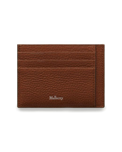 A classic card holder equipped with six card slots, one central compartment, and two slip pockets. Details: A multi-functional card holder perfect for everyday use. Foil embossed Mulberry signature on the front Foil embossed tree signature on the back Six credit card slots (three on each side) One central card compartment Two slip pockets (one on each side), behind the card slots Nappa lined Height 8.2cm Width 11.2cm Material Small Classic Grain A soft cow leather with a small printed grain effect. The leather is lightly finished to protect the grain surface. This product's code is RL7423-552G110