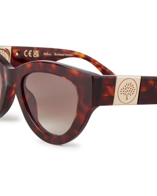 Evoke the mystery of the moon with our Luna sunglasses, a modern cat eye design featuring Mulberry Tree branding on the temples. Details: A pair of cat eye style sunglasses with Mulberry Tree branding. Mulberry Tree plaque detailing Lens category: 2 Solid lenses UV400 Store in case when not worn and clean regularly for longevity These sunglasses come with a case, a lens cloth or bag, and a branded cardboard box. Lens Height 4.1cm Bridge 2.1cm Arm Length 14cm Material Bio Acetate These frames are made from bio-acetate, a biodegradable and recyclable cellulose acetate. This is gained from renewable resources such as seed fibres derived from cotton, and wood fibres derived from conifers and deciduous trees. This product's code is RS5490-000F175