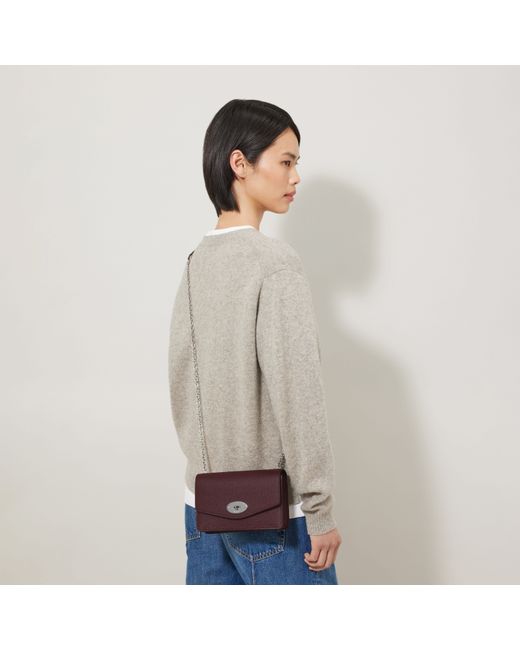 The Small Darley is a classic bag that celebrates our iconic Postman's Lock. It's perfect for carrying essentials or keeping valuables secure inside a large tote. Its elegant envelope silhouette can even be transformed into a clutch due to its detachable chain strap. Details: The Small Darley can be worn across the body, over the shoulder, or carried as a clutch. Detachable chain strap Postman's Lock closure One main compartment Eight credit card slip pockets One internal zip compartment Two internal slip pockets One external zip pocket with gusset Silver component finish Nappa and moire lining Height 13cm Width 19cm Depth 4.5cm Shoulder Strap Length 56cm Weight 0.5kg, approximately Material Small Classic Grain A soft cow leather with a small printed grain effect. The leather is lightly finished to protect the grain surface. This product's code is RL7791-205K560
