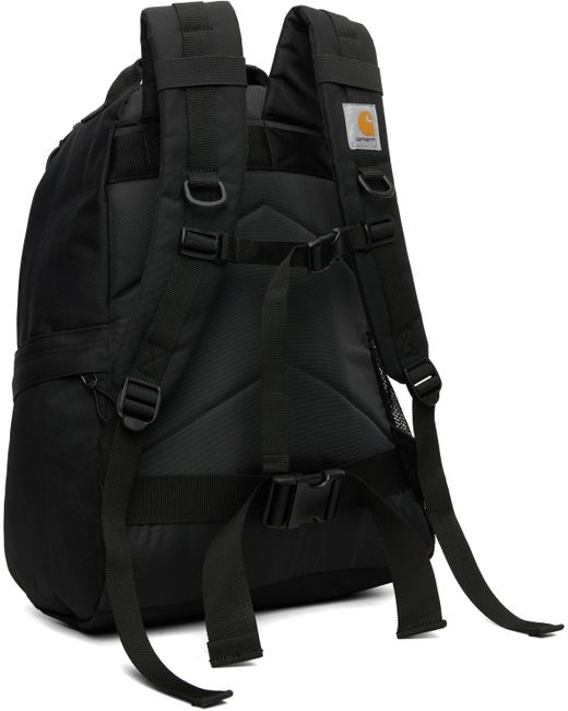Water-repellent 11.25 oz recycled polyester canvas backpack. · Padded carry handle · Adjustable padded shoulder straps · Logo patch at strap · Press-release sternum strap · Zip pocket at top · Logo patch and bungee-style drawstring at face · Press-release board straps · Patch pocket and zip pocket at sides · Press-release luggage strap at padded back face · Two-way zip closure · Coated canvas lining · H17.75 x W11.5 x D7.5 / 24.8 L Supplier color: Black