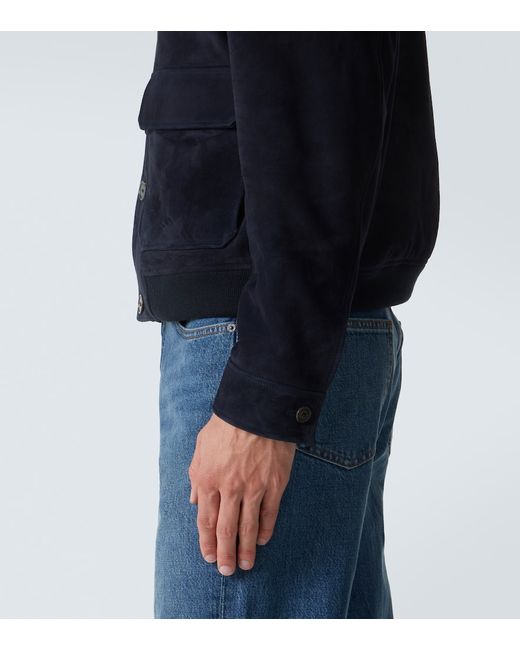 Material: 100% goat leather (suede). Care instructions: specialist clean. Made in Turkey. Designer color name: Dark Navy. Item color: blue. Lining: 100% cupro. Closure: buttoned front. Pockets: flap pockets. Cuff: buttoned. Hem: ribbed. Leather.