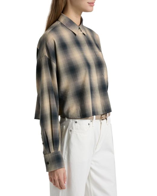 Cut for a cropped silhouette, this Marin shirt from rag & bone is crafted of a plaid cotton-blend. Spread collar Long sleeves, button barrel cuffs Chest patch pocket Button-front closure 54% cotton/46% modal Machine wash Imported SIZE & FIT This style is designed for a boxy fit About 20.5" from shoulder to hem Chest: about 54" Sweep: about 53.5" Sleeve length: about 32.75" Model measurements: 5'10" tall Model is wearing a US size Small ABOUT THE BRAND In 2002, rag & bone founder Marcus Wainwright combined his British heritage with a downtown-New York aesthetic to set the tone for the label. At the heart of the edgy-yet-laid-back brand is its focus on quality craftsmanship and attention to detail. The epitome of cool, off-duty style, it's no wonder the signature second-skin denim is favored by many. Contemporary Sportswear - Rag And Bone > Rag & Bone > Saks Fifth Avenue. rag & bone. Color: Navy Plaid. Size: Medium.