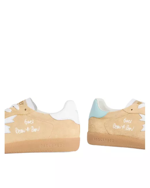 sandy brown leaf appliqué flat sole lettering logo detail rear logo detail