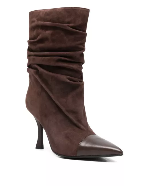 Brown 90mm pointed-toe ruched boots