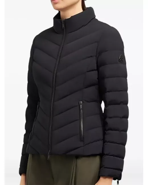 black front two-way zip fastening high neck chevron quilting side zip-fastening pockets appliqué logo