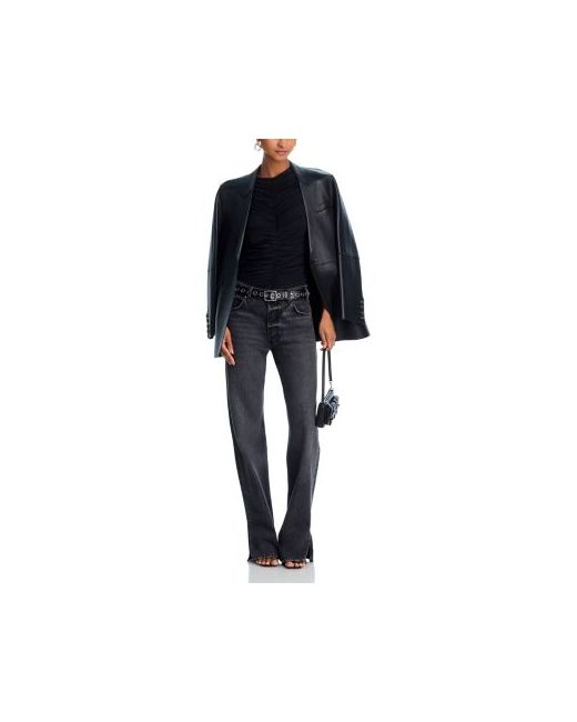 Wayf Beth Ruched Mesh Top.Color:Black.Size:XS.Material:92% nylon/8% elastane; lining: 100% polyester.Tops.