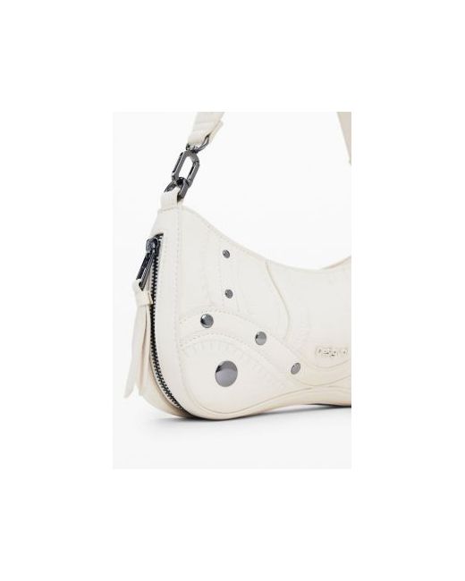 Small bag in faux leather fabric, zip closure, and embroidered details with metallic embellishments.
