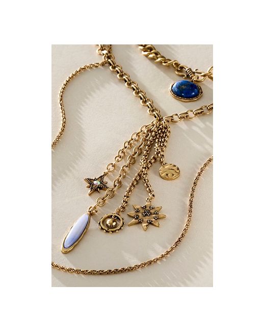 Elevate your look with a layered necklace adorned with mixed dangly charms for a vintage-inspired touch. * Adjustable lobster clasp closure Tate Layer Necklace by Free People in Gold Stars Charms & Lapis