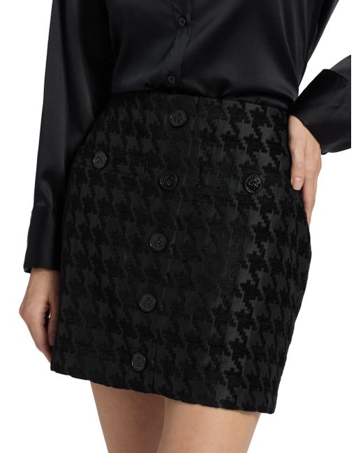 Crafted of woven houndstooth, the Mireya miniskirt from L'AGENCE is cut for a tailored fit and adorned with tonal crest buttons. Clean waist Button-front closure 72% acrylic/28% polyester Dry clean Imported SIZE & FIT About 15.5" long Waist: about 28" Model measurements: 5'10" tall Model is wearing a US size 4 Please Note: Compared to the Brand's Size Guide, this style measures true to size. ABOUT THE BRAND Founded in 2008, L'Agence marries Southern California ease with chic Parisian style. Using luxurious fabrics, the Los Angeles-based label delivers feminine collections that are both timeless and versatile. In 2015, the label launched a denim line in a range of sleek, impeccably tailored cuts. Contemporary Sportswear - Workshop > L'agence > Saks Fifth Avenue. L'AGENCE. Color: Black Black Houndstooth. Size: 0.