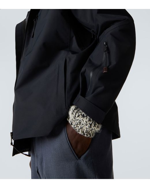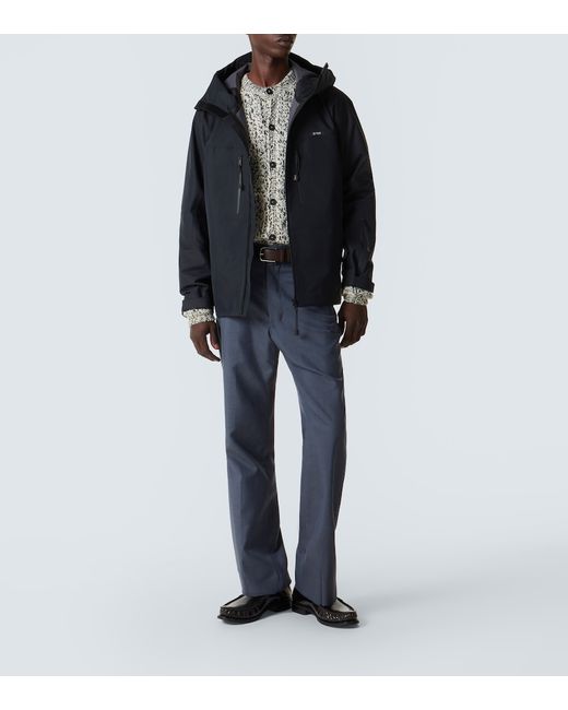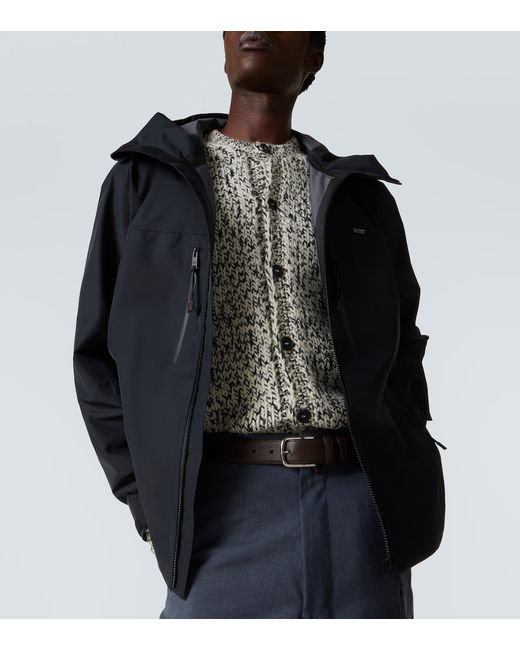 Material: 100% polyester (recycled). Care instructions: hand wash cold. Made in Italy. Designer color name: Black. Item color: black. Details: 100% leather. Contains non-textile parts of animal origin. Hem: drawstring at the hem for an adjustable fit. Pockets: zipped pockets, sleeve pocket. Cuff: tab cuff. Drawstring hood.