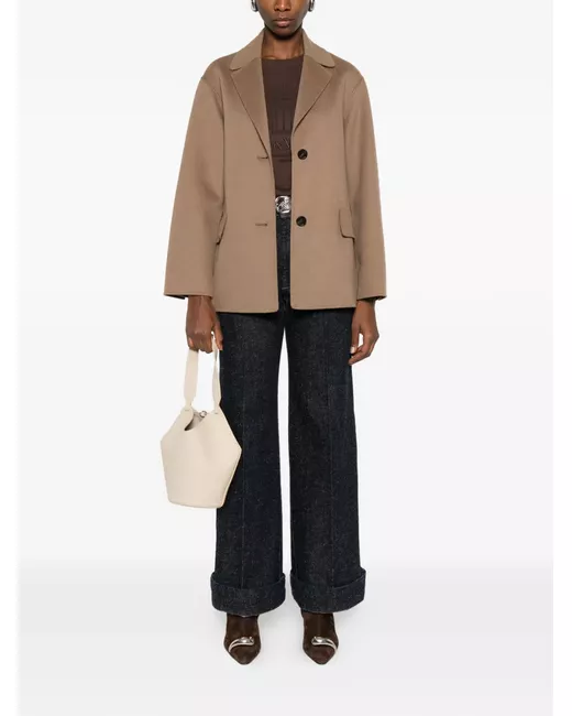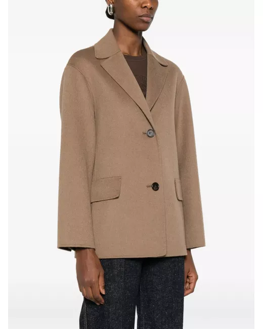 light brown front button fastening notched lapels front patch pockets long sleeves