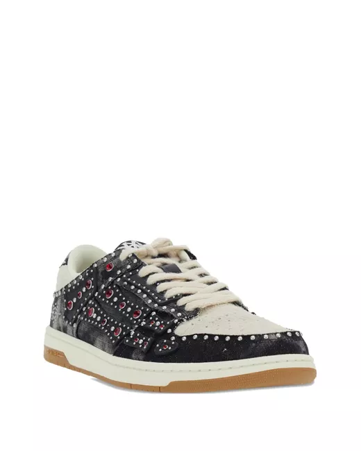 Skel-Top Suede-Trimmed Studded Appliquéd Denim Sneakers
