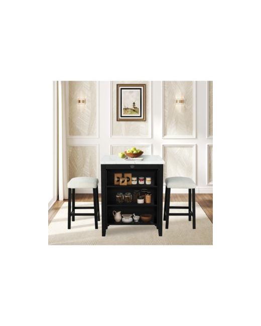 This compact 3-piece counter-height dining set is designed to elevate both style and function in your modern home. Featuring a sleek table with a sophisticated faux marble high-gloss top, it brings refined elegance to your dining area. The table is equipped with built-in Usb-a and Usb-c ports on the side, offering seamless device charging to keep you connected while you dine or work. Complemented by two stools upholstered in soft boucle fabric, the set balances comfort with contemporary design. Crafted from high-gloss paper, boucle fabric, paper veneer, rubberwood, and engineered wood, this dining set combines durability with polished aesthetics. Ideal for apartments, breakfast nooks, or compact kitchens, it offers smart storage solutions and chic seating in one package. Upgrade your space with this modern essential today.