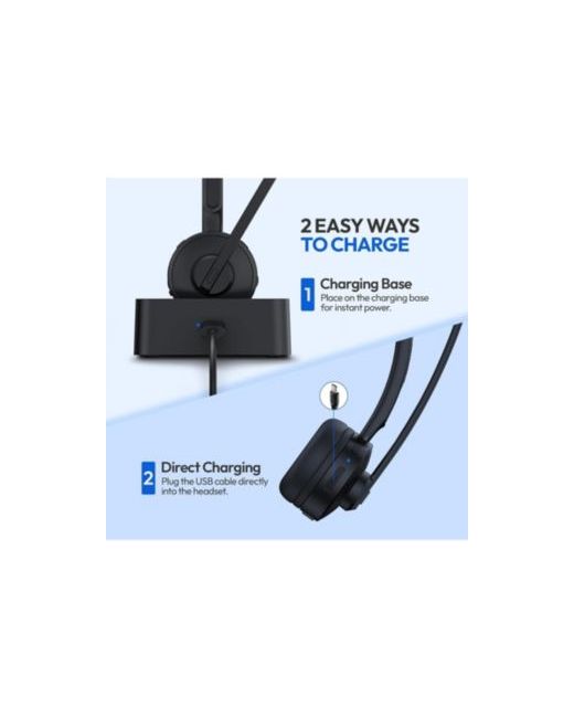 The Philips TAL3000 Bluetooth Headset is built for professionals who need clear communication and lasting comfort whether in the office, on the road, or working remotely. This wireless headset with mic features a noise-canceling microphone that filters background noise for crystal-clear calls and meetings. Designed with a lightweight, adjustable frame and a flip-away mic, it offers flexible all-day wear. Dual Bluetooth connectivity lets you connect two devices simultaneously—perfect for switching between your phone and computer headset—while on-headset controls make it easy to mute, adjust volume, or activate voice assistants like Siri or Google Assistant for hands-free operation. The TAL3000 includes dual charging options, allowing you to power up via the convenient charging base or a Usb-c charger when on the go. Ideal as a call center headset, wireless computer headset, or Bluetooth headset with microphone for work, it delivers reliable performance, comfort, and clarity across all y