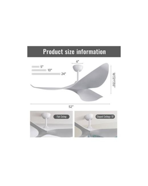 The 52-inch ceiling fan lamp combines strength and ingenuity, providing a cozy home experience. With 6 adjustable wind speeds, it can be customized to suit different seasons and scenarios. The 1/2/4/8-hour timer function ensures you don't have to worry about power outages when sleeping or going out. In summer, it rotates forward to drive heat, and in winter, it rotates backward to promote air circulation, allowing you to enjoy a comfortable environment throughout the year. The multi-functional remote control simplifies the operation, allowing you to easily control the wind speed, lighting, and timing settings. The 3 different height suspension rods (short / medium / long) are suitable for 8-10 feet ceiling heights, making installation convenient and flexible. Its simple and modern design is versatile and can seamlessly blend with various home styles, whether in the living room, bedroom, or dining room.
