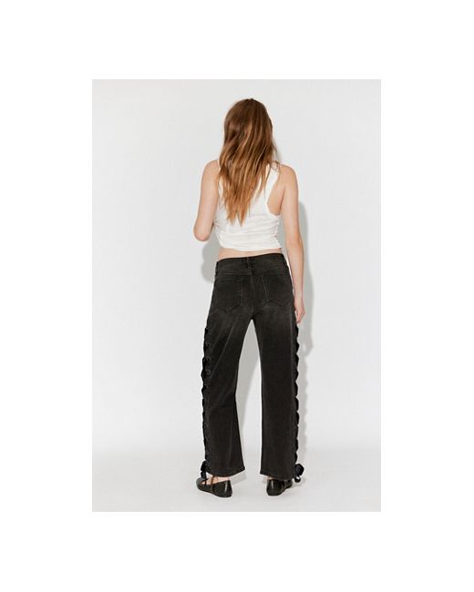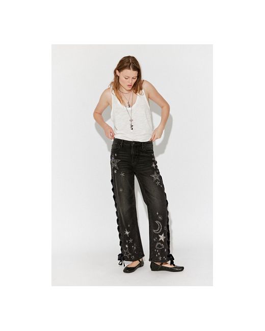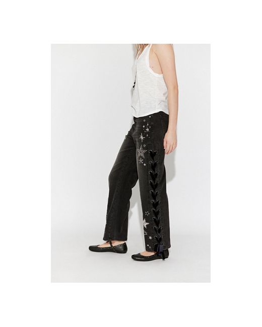 Laidback and laced-up, these straight-leg jeans are made to rest on the waist for an effortless vibe. * Button and zip fly * Five pockets * Lace detailing on the sides Driftwood Lacy Jeans at Free People in Celestial, Size: 25