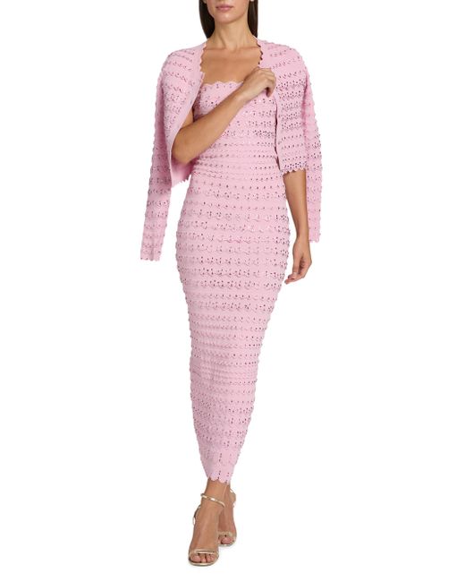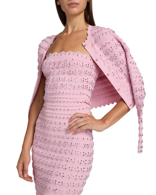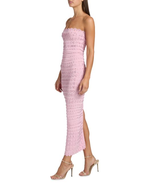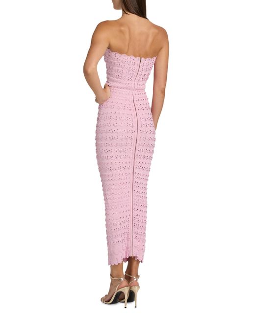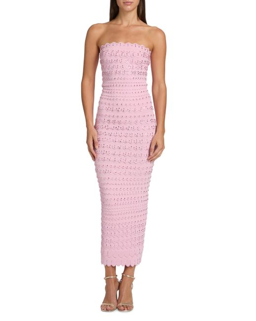 LoveShackFancy's Eclipse body-con dress is finished in bandage-style ruffles adorned with shimmering rhinestones. Straight neckline Strapless Back slit Pulls over 65% viscose/35% nylon Dry clean Imported SIZE & FIT Model measurements: 5'10" tall Model is wearing a US size Small. Contemporary Sportswear - Trend > Loveshackfancy > Saks Fifth Avenue. LoveShackFancy. Color: Ballet Slipper. Size: XS.