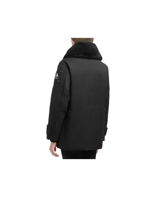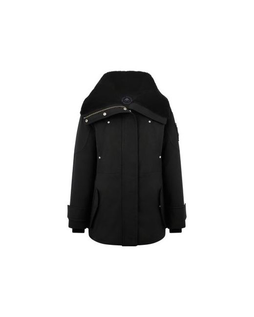 Moose Knuckles Aurora Shearling Trim Down Jacket.Color:Black.Size:XS.Material:74% cotton/26% nylon; lining: 100% nylon; lining 2 & trim: real shearling, origin: Australia, dyed. fill: 90% down/10% feathers.Coats.