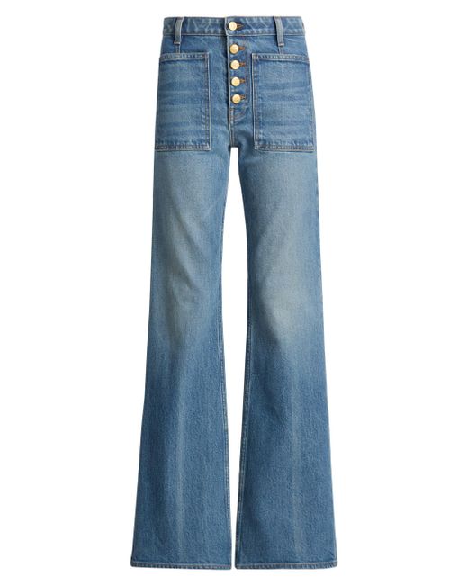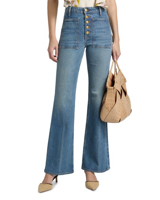 Crafted of stretch denim, Ulla Johnson's Lou five-pocket-style jeans are designed with a high-rise fit, fade detailing, and a flared hem. Five-pocket style Zip fly, button closure 99% cotton/1% lycra Machine wash Imported SIZE & FIT Model measurements: 5'10" tall Model is wearing a US size 4 ABOUT THE BRAND Manhattan-based designer Ulla Johnson credits her archaeologist parents as inspiration for her namesake ready-to-wear label, founded in 1998. Natural fibers, easy fits and meticulous finishes are seen in each collection, which incorporate sweeping silhouettes, and printing and dyeing techniques from around the world. Contemporary Sportswear - Contemporary Lifestyle > Ulla Johnson > Saks Fifth Avenue. Ulla Johnson. Color: Danube. Size: 24.
