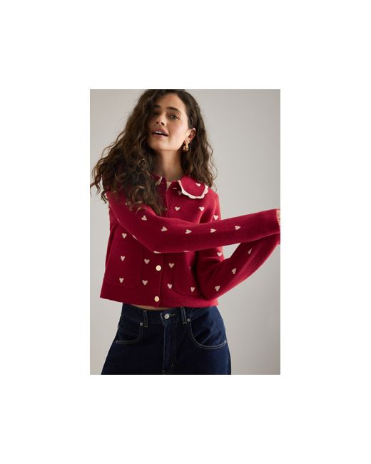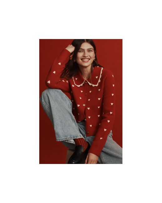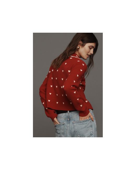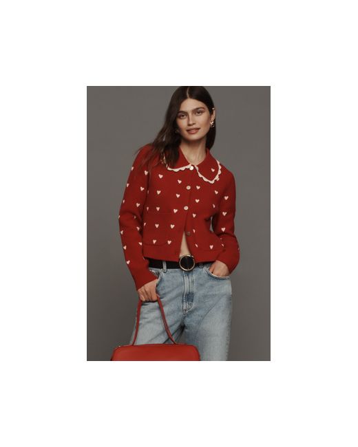 By NVLT 80% Nylon, 20% Polyester Peter Pan collar Button front Front patch pockets Hand wash Imported Heart Icon Knit Jacket by NVLT Size: 2XS, Polyester/Nylon at Anthropologie