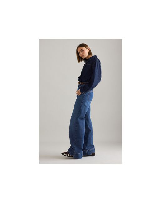 By FRAME 100% Regenerative Cotton Zip fly Five-pocket styling Machine wash Imported Fit: High-rise Flare leg The Slice Flare Jeans by FRAME in Blue, Women's Size: 25, Cotton at Anthropologie
