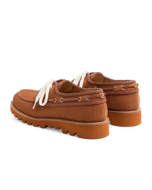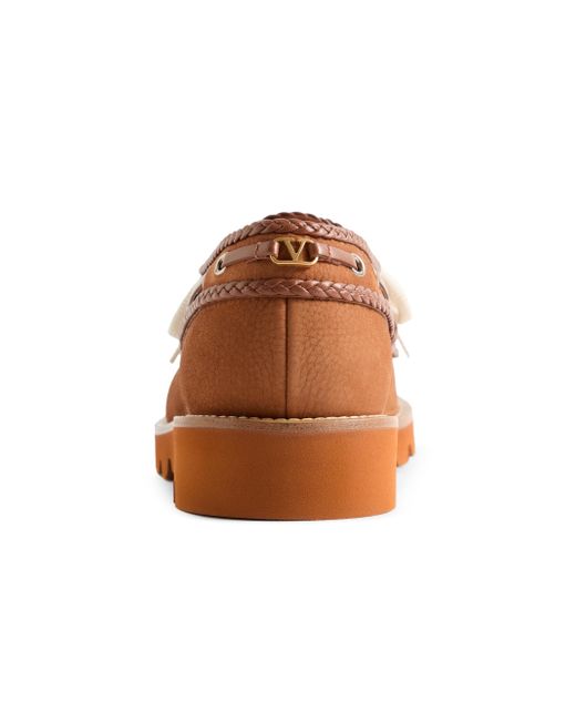 Valentino Garavani Palm Avenue suede boat shoes with fringe detail. VLogo Signature detail in antique brass effect finish Rubber sole Made in Italy. Lsd Rtw - Valentino Rtw > Valentino Garavani > Saks Fifth Avenue. Valentino Garavani. Color: Tobacco. Size: 9.