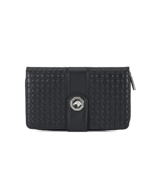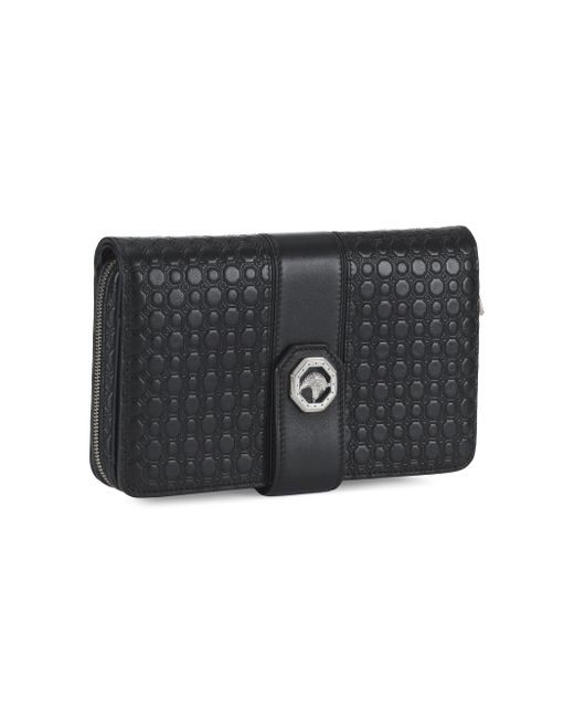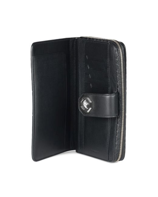 Sleek and sophisticated, this men's zip-around wallet is crafted from 100% calf leather, offering a smooth, luxurious texture and a structured, compact design. A refined button-strap closure elegantly secures the front flap, complementing the secure zip-around for added practicality. Perfectly sized for essentials, it combines practical functionality with refined Italian craftsmanship. A modern classic, it exudes elegance and durability in every detail. Men's zip-around wallet with button-strap closure Refined and structured silhouette 100% calf leather exterior and interior Geometric pattern Secure zip closure for added protection Button-strap closure for elegant security Compact design 14 cm x 4 cm x 21 cm / 5.5'' x 1.6'' x 8.3'' Made in Italy. Lsd Mens - Mens Rtw Lsd Mp > Stefano Ricci > Saks Fifth Avenue. Stefano Ricci. Color: Black.