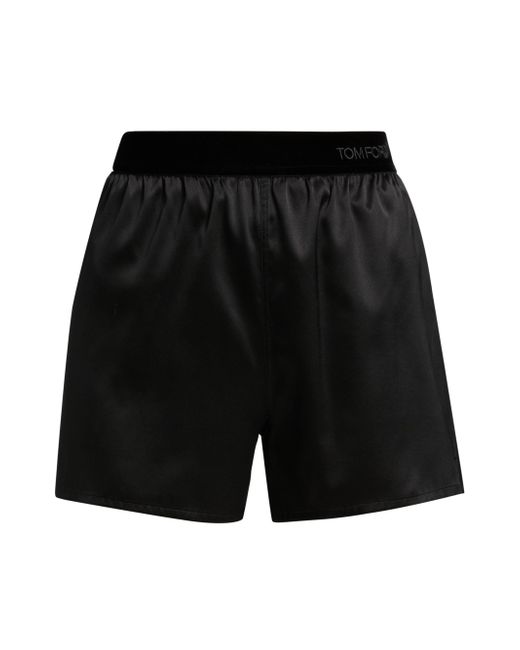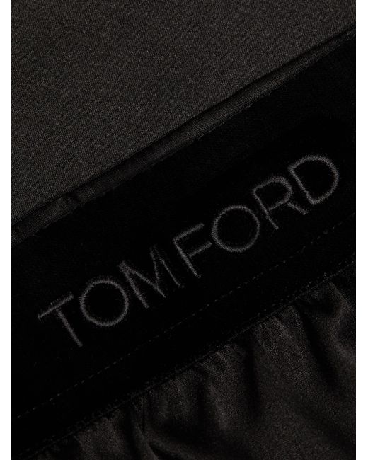 Crafted of Italian stretch silk, TOM FORD's boxer pajama shorts feature a glossy satin finish, jacquard logo-woven waistband, and light shirring. Elasticized waistband 94% silk/6% elastane Detail: 90% nylon/10% elastane Dry clean Made in Italy SIZE & FIT Model measurements: 5'10" tall Model is wearing a US size Small ABOUT THE BRAND After 10 years of serving as the Creative Director for several international luxury fashion houses, Tom Ford launched his own line of optical frames, sunglasses and beauty in 2005. The following year he debuted menswear, and in 2010, women's ready-to-wear. His sleek, tailored aesthetic has since catapulted him to mega-brand status. Advanced European - Italian Collections > Tom Ford > Saks Fifth Avenue. TOM FORD. Color: Black. Size: Large.