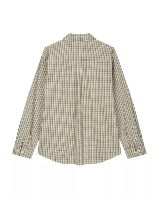 light beige and green checked pattern long sleeves front button fastening buttoned cuffs chest patch pocket