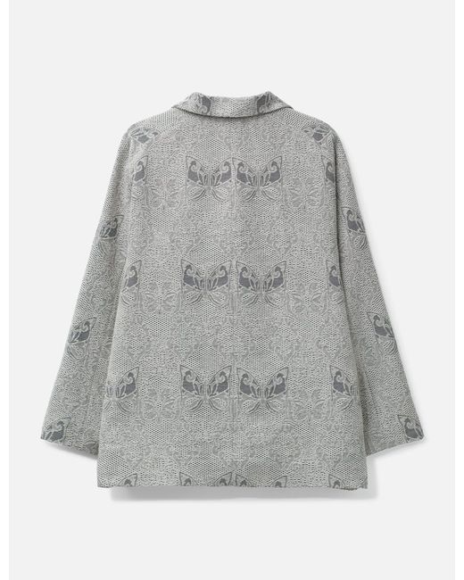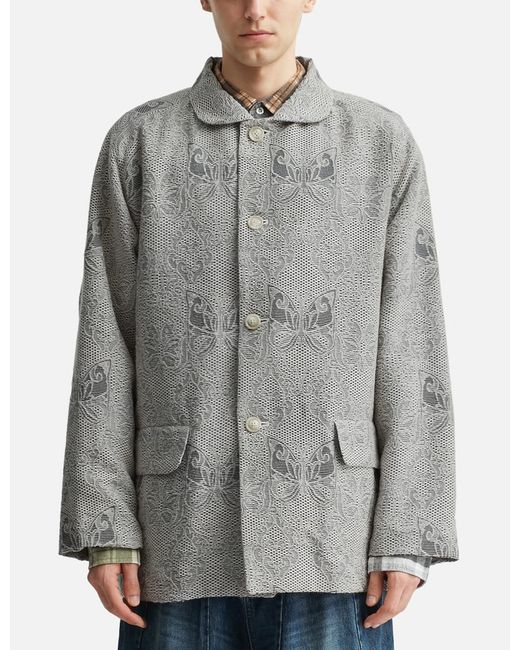 NeedlesStand Collar JacketAcrylic and wool blend exteriorAll-over papillon jacquard patternStand collarFour-button closureFlap pocketsMade in JapanColor: Off White