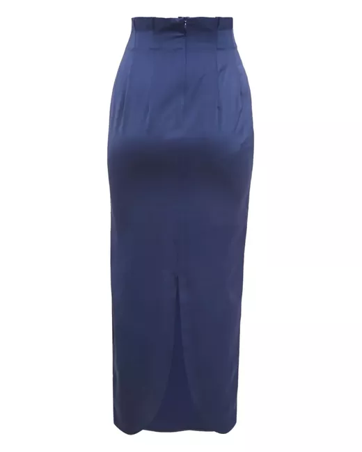 blue satin pleats maxi back zip fastening rear slit Condition: GOOD. This previously owned and used item is in good condition with minimal signs of use. This may include fading of material or plating and scratches.