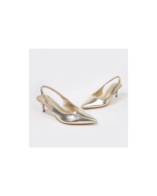 Understated sophistication with a glossy edge, Fancy slingbacks feature a sleek squared topline and pointed toe on a classic kitten heel.