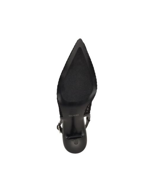 Turn heads in the Guess Pandy statement-making mesh slingback pump, designed with a sleek pointed toe and modern stiletto heel. The airy mesh overlay adds bold texture, while the adjustable strap ensures a secure, comfortable fit. This style delivers effortless sophistication. Est. 1981, Guess is a global lifestyle brand and a symbol of a young, adventurous lifestyle.