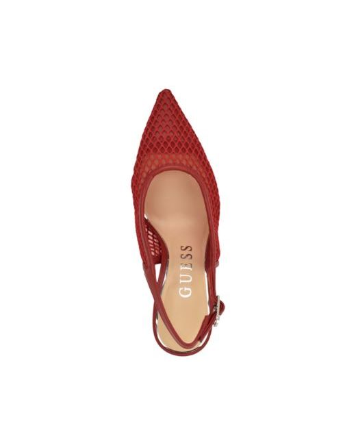 Turn heads in the Guess Pandy statement-making mesh slingback pump, designed with a sleek pointed toe and modern stiletto heel. The airy mesh overlay adds bold texture, while the adjustable strap ensures a secure, comfortable fit. This style delivers effortless sophistication. Est. 1981, Guess is a global lifestyle brand and a symbol of a young, adventurous lifestyle.
