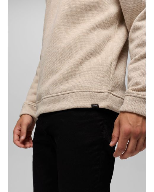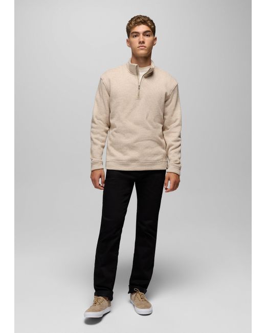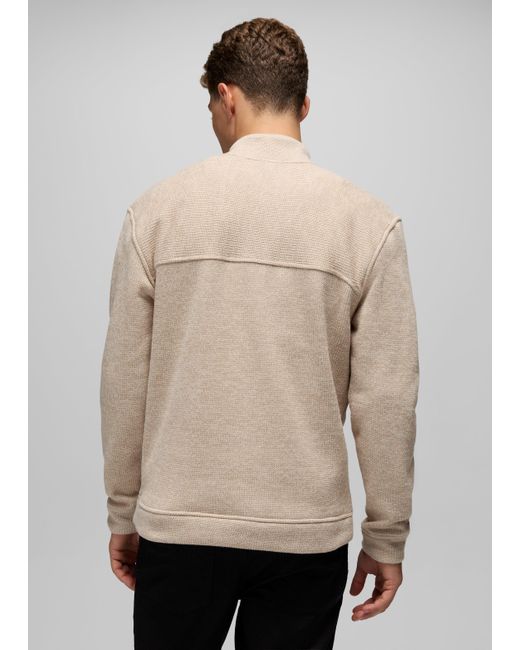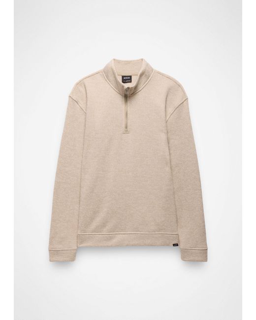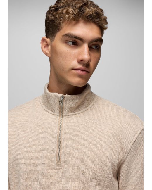 A 1/4-zip mock neck sweater made with cozy sweater fleece. Layer up for dinners, evening walks, and wintery drives with the Two Harbors 1/4-Zip Sweater. Made with a plush sweater fleece, this pullover features a standard fit and a cozy mock neckline you'll reach for every time the temps drop. | Mens prAna Two Harbors 1/4 Zip Sweater in Beige, Size Large