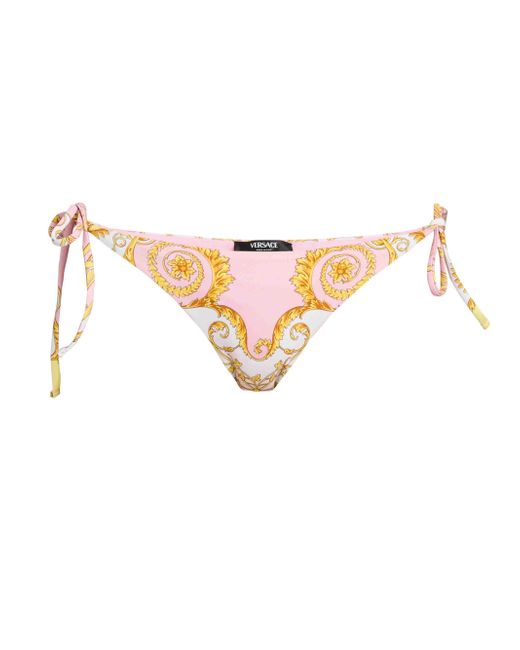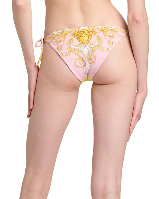 Crafted in Italy, Versace's tie bikini bottom boats a striking filigree print with the iconic Medusa head at the rear. Elasticized waistband Side self-tie closure 78% nylon/22% elastane Lining: 88% polyester/12% elastane Hand wash Made in Italy Please note: Bikini top sold separately. ABOUT THE BRAND Founded in 1978, Versace is instantly recognizable by the signature Medusa head logo, chosen by founder Gianni Versace for its Greek symbolism. The Italian label is known for its luxe, bold clothing and accessories-think gilding, oversized logos and punchy prints. Since taking over artistic direction, Gianni's sister Donatella Versace has maintained the brand's strong identity, with a renewed vision to give customers the ultimate freedom to express themselves. Outerwear And Swimwear - Designer Swimwear > Versace > Saks Fifth Avenue. Versace. Color: Pale Yellow Rose Quartz. Size: XS.