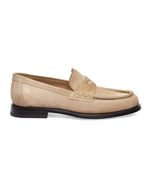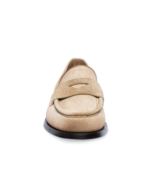 These Airglow penny loafers from Santoni, crafted of suede, are designed with an apron toe and a leather sole. Apron toe Suede upper Leather lining Leather sole Made in Italy. Women's Shoes - Designer Classics > Santoni > Saks Fifth Avenue. Santoni. Color: Beige. Size: 7.