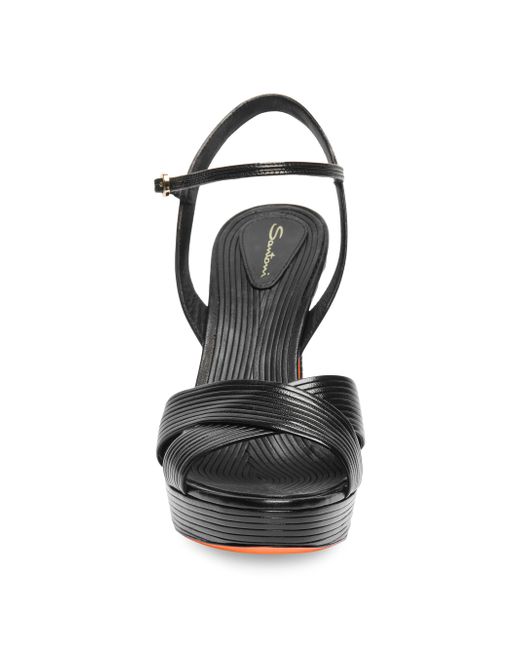 These Laureen sandals from Santoni, crafted of leather, are designed with crisscross straps and a 100mm block heel. Open toe Buckle closure Leather upper Leather lining Leather sole Made in Italy SIZE Block heel: about 4" (100mm) Platform: about 0.75" (20mm). Women's Shoes - Designer Classics > Santoni > Saks Fifth Avenue. Santoni. Color: Black. Size: 6.