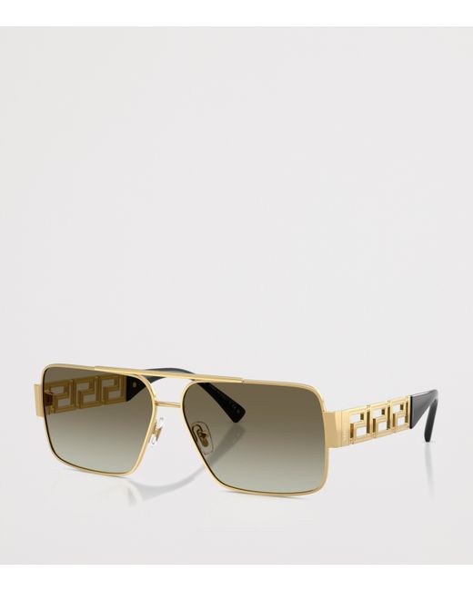 Versace's ability to blend impactful styles with quality craft ensures that its accessories are always at the top of the fashion set's wish lists. These rectangular sunglasses are made in Italy with gently tinted lenses that offer complete protection from uv rays, while gold-tone temple bars in the signature Greca pattern add a hallmark touch without the need for logos.