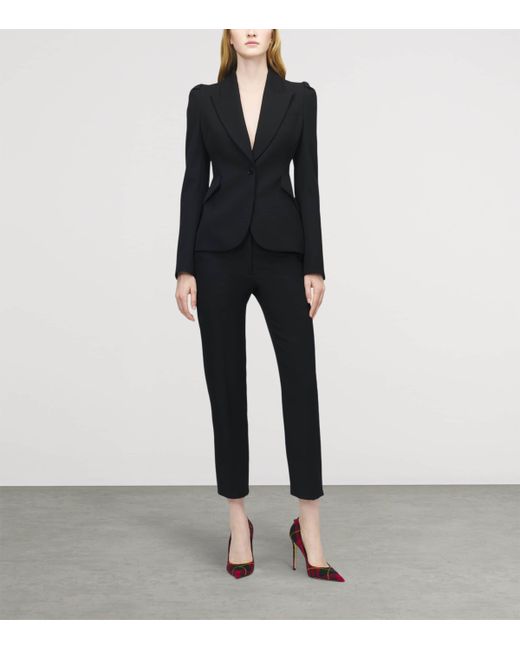 McQueen's mastery of cut is on full display in this sharply tailored blazer, where the house's sculptural instincts meet everyday versatility. Slightly exaggerated shoulders set a powerful frame, narrowing into a cinched waist that creates the label's unmistakable hourglass silhouette. Finished with bold flap pockets that add structure and attitude, it's a piece that turns classic tailoring into something far more charged.