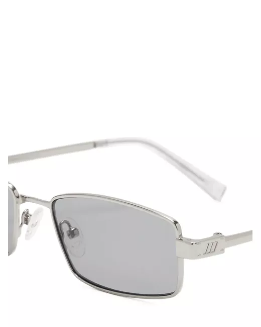 silver rectangle frame nose pads tinted lenses detail at temple These glasses come with a protective case.