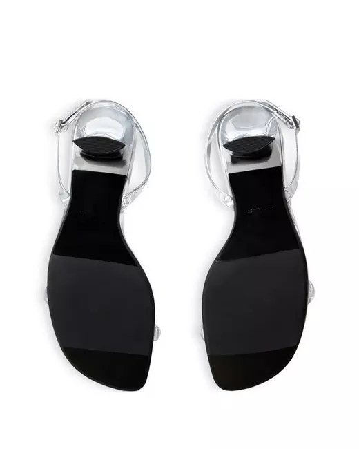 silver heeled strap open toe buckle fastening curved heel