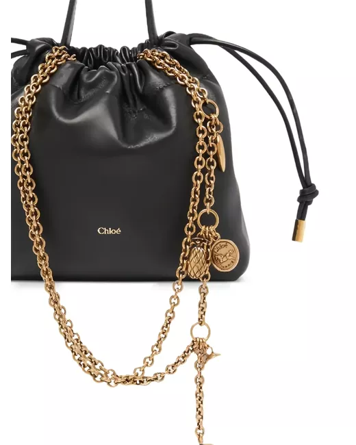 black chain embellishment drawstring fastening top handle charms embellishments logo motif