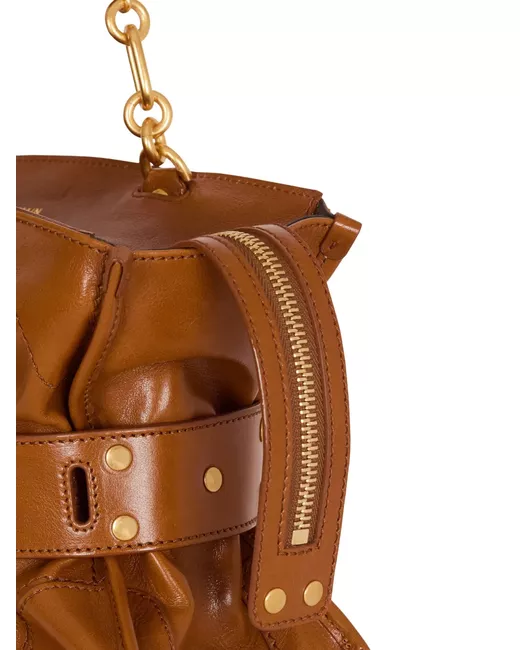 brown calfskin leather gold-tone hardware top handle chain detailing zip closure