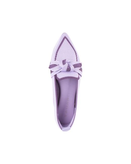 Tahari Women's Florentia slip on loafer with breathable knit upper. Contrast trim design and bow detail. Sophisticated and stylish design for all day wear and support.