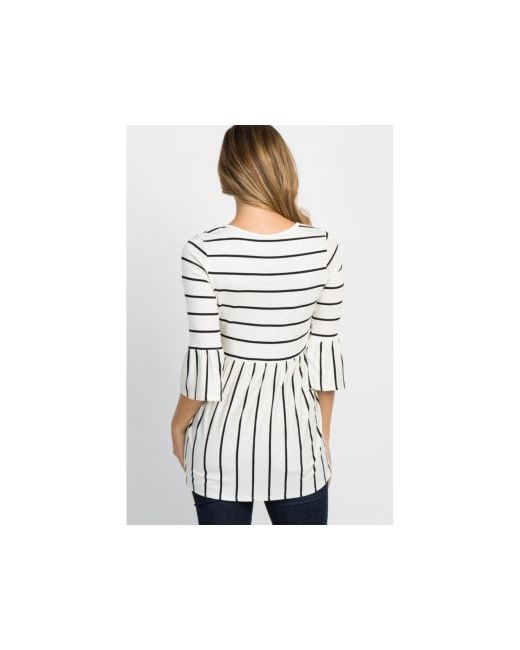 Add effortless charm to your maternity wardrobe with the PinkBlush Ivory Striped Peplum Ruffle Maternity Top. Featuring soft ivory hues and classic horizontal stripes, this top is designed to accentuate your bump with a flattering peplum silhouette. Delicate ruffle sleeves lend a feminine touch, while the lightweight, stretchy fabric provides all-day comfort from the first trimester to the third. Perfect for dressing up or down, style this versatile top with your favorite jeans or maternity skirt for any occasion. Embrace maternity fashion with confidence and style!