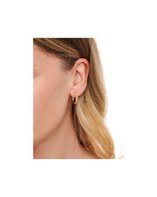 Women's Golden Beaded Ball Hoop Earrings Plated Sterling Silver