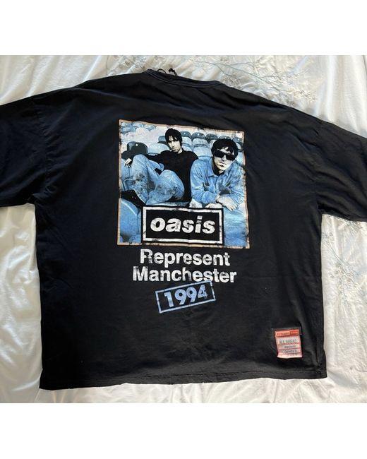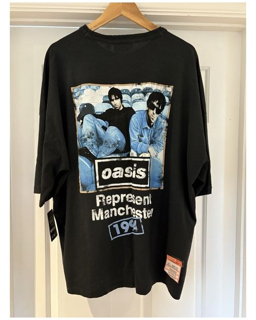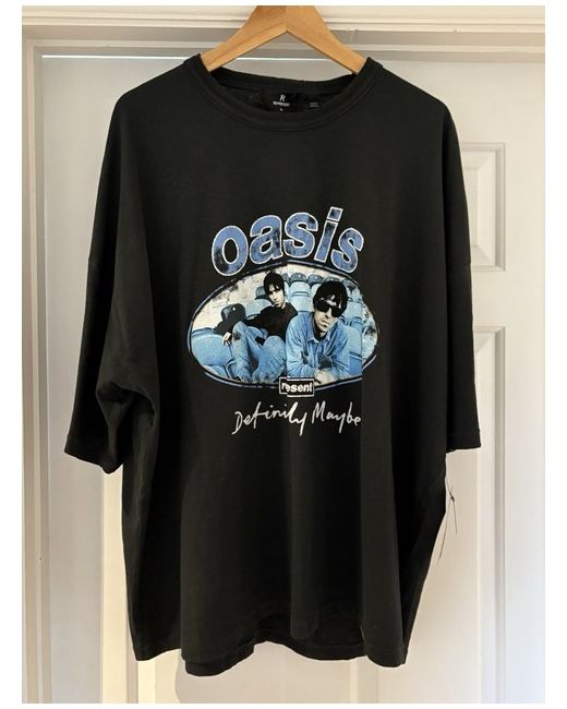 The tee itself has nibbling distressed details throughout. • Iconic Oasis Imagery. Composition: 85% Cotton, 15% Hemp. The t-shirt is an oversized boxy fit, with dropped shoulders and longer sleeves.
